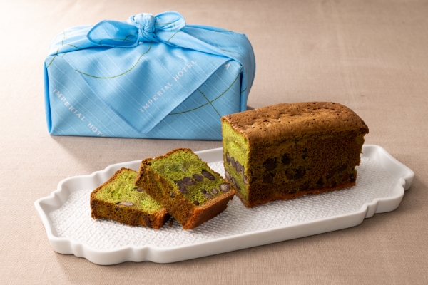 「日本のお茶」をテーマにした焼き菓子の第2弾として登場したケーキ。ほうじ茶の芳ばしい焙煎の香り豊かな生地とバターの風味豊かな生地をマーブル模様にし、渋皮栗、丹波黒豆、松の実を加え、きな粉を使用したクッキー生地とあわせて焼き上げました。香り高いほうじ茶の風味、ほくほくとした渋皮栗やもちもちとした丹波黒豆の食感、和の食材のハーモニーをお楽しみください。専用の風呂敷に包まれた気品あるパッケージも魅力です。