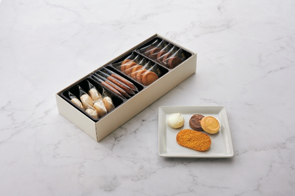 長年愛され続けているクッキーです。甘さ控えめで素材の個性を活かした4種類(マカロン、イチジク、チョコレート、ココナッツ)が詰め合わせられています。オーブンのコンディションに合わせて丁寧に焼き上げられた均一な仕上がりが特徴で、個包装のため風味と食感が長持ちします。ちょっとした手土産やご自宅でのティータイムのお供にもおすすめです。
