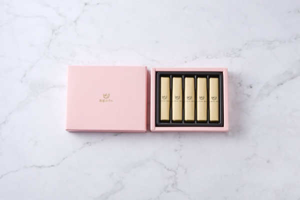パステルピンクの愛らしいパッケージに、ビターとホワイトのマーブル模様のスティック型マーブルチョコレートを詰め合わせました。口どけの良いホワイトチョコレートと、カカオの香りが際立つビターチョコレートをそれぞれ同量ずつ使用し、あえてマーブル模様が残る程度に混ぜ合わせることで、2つの味わいをお楽しみいただけます。ギフトや、日常のティータイムを彩るスイーツとしてもおすすめです。