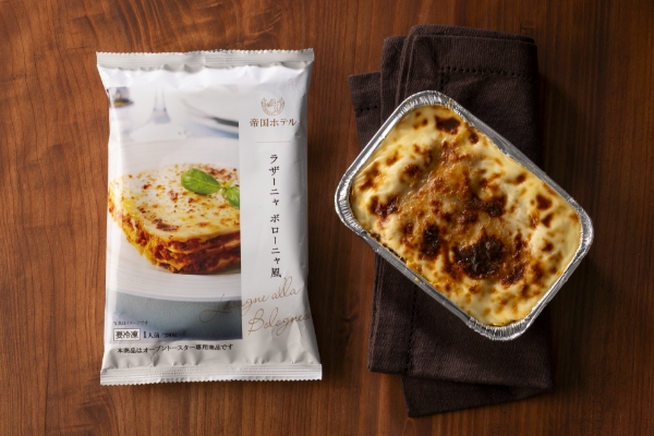 かつて帝国ホテルのイタリアンレストラン「チチェローネ」で使用していたソースをヒントに生まれた、ボローニャ風ラザーニャです。赤ワインでじっくりと煮込み旨味を凝縮させたボロネーズソースと、チーズが溶け込む濃厚なベシャメルソースが特徴です。ご家庭のオーブントースターで香ばしく焼き上げるだけで、イタリア料理の定番「ラザーニャ」をご家庭で簡単にお楽しみいただけます。