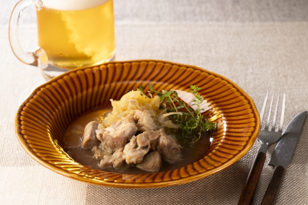 ドイツの家庭料理として親しまれるアイスバインを、帝国ホテルならではの技法で繊細に仕上げました。国産の豚すね肉を香草入りの塩水に漬け込み、時間をかけて煮込むことで、しっとりと柔らかな食感を引き出しています。ザワークラウトがもたらす程よい酸味は、ビールやワインとの相性も抜群です。そのままでも美味しく、温めて粒マスタードを添えて食べるのもおすすめです。