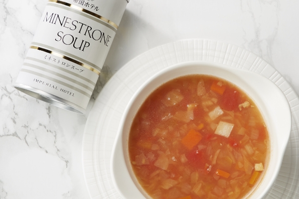 完熟トマトの爽やかな酸味をベースに、キャベツ、玉ねぎ、じゃがいも、ベーコンなど計8種類の具材の旨味を閉じ込めたミネストロン(ミネストローネ)です。素材を丁寧にソテーしてから煮込み、さらに充てん後にも加熱を加えることで、具材のひとつひとつにスープの旨味が深く染み渡っています。ひと口ごとに異なる食感と野菜の甘みが楽しめる、具だくさんで満足感のある一杯は食べ応えのあるスープをお探しの方にぴったりの逸品です。