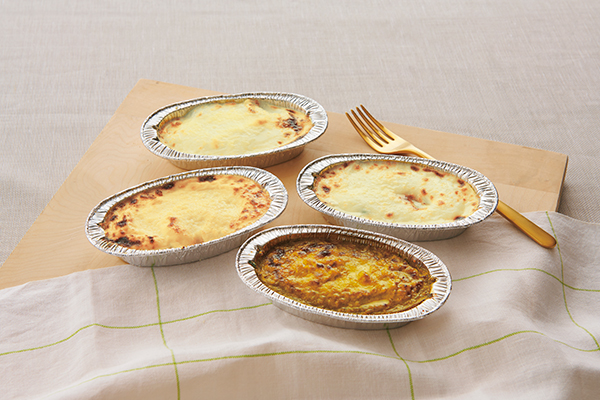 少なめのお食事や中間食にちょうど良い、小容量サイズのグラタンとドリアを4種類詰め合わせました。シーフードの旨味が広がるパプリカ風味のドリア、秋鮭とほうれん草のクリーミーなグラタン、鶏もも肉とハムが主役のチキンのマカロニグラタン、そしてお子様から大人まで楽しめるマイルドなキーマカレードリアと、バラエティ豊かなライアナップ。オーブントースターなどで加熱するだけでお召し上がりいただける冷凍商品です