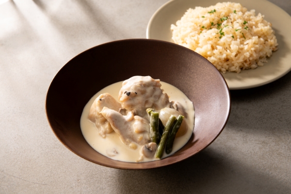 フランス語で「最高のソース」を意味するシュプレームソースをまとわせた、国産鶏のソテーです。初代総料理長・村上信夫の時代から受け継がれる伝統のソースは、バターでソテーした鶏肉とマッシュルームのエキスを凝縮し、生クリームやレモン汁、さらに香り高いトリュフを加えて濃厚に仕上げました。しっとり柔らかな鶏肉に、バターライスやフェットチーネをあわせていただくのがおすすめです。