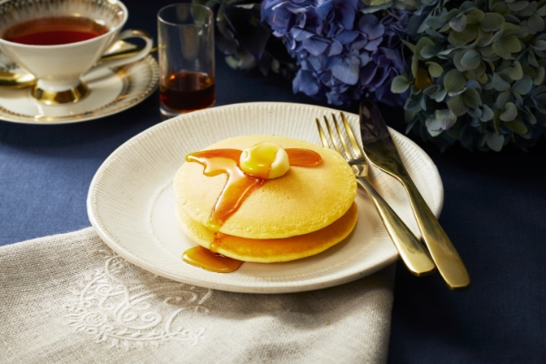 1953年に帝国ホテルのメニューに初めて登場して以来、歴代のシェフによって大切に受け継がれてきた伝統のパンケーキです。卵とバターをふんだんに使用し、帝国ホテルキッチンペストリーシェフがソフトでしっとりとした食感に焼き上げました。電子レンジで解凍するだけで、ふんわり漂う小麦の香りと「伝統の味」をすぐにお楽しみいただけます。特製のメープル入りシロップとソフトホイップバターを添えたセットでお届けします。