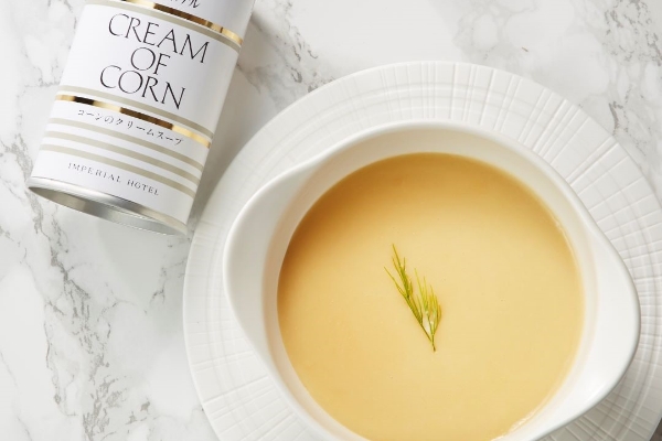 とうもろこしを丁寧に裏ごしし、なめらかな口当たりと風味豊かな味わいを追求した、帝国ホテル伝統のコーンクリームスープです。クリーミーで優しい味わいは年齢を問わずお楽しみいただけます。