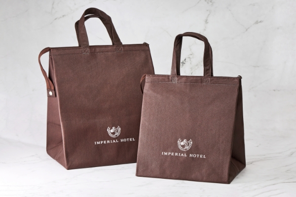 帝国ホテルのロゴがプリントされたオリジナル保冷バッグです。MサイズとLサイズの2種類をご用意しております。シンプルなデザインなので、お弁当の持ち歩きやピクニック、ご近所へのおすそ分けなど様々なシーンでご利用いただけます。