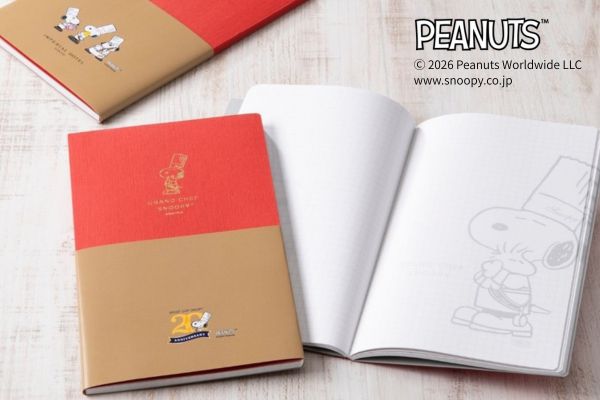 ノートの中面にも料理長スヌーピーをあしらいました。使うたびに目に留まる可愛らしい仕様になっています。