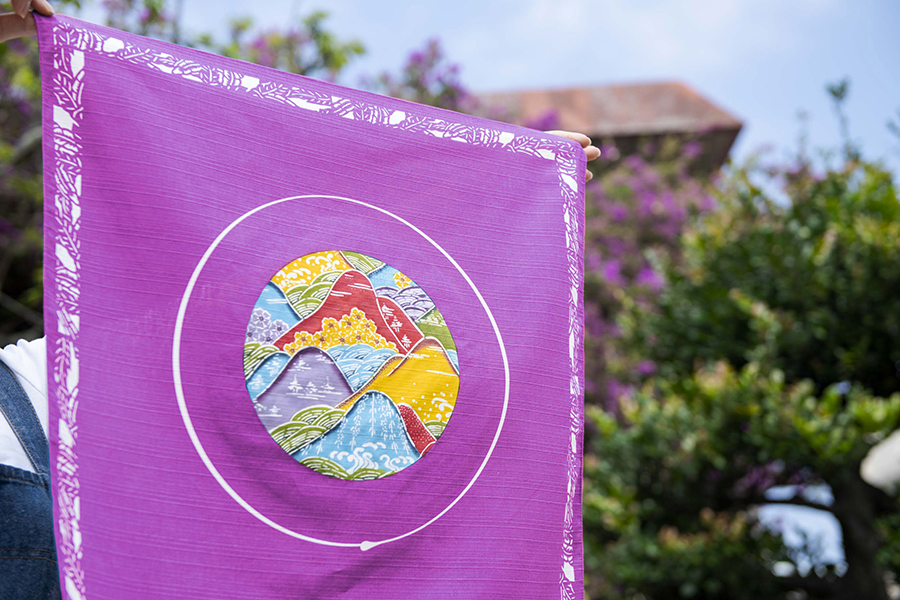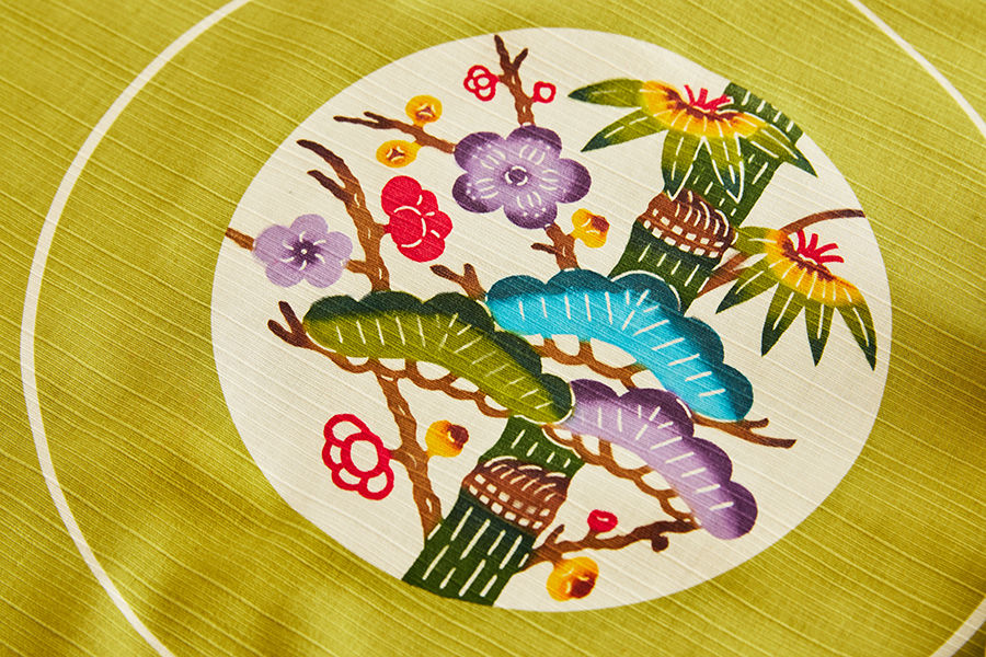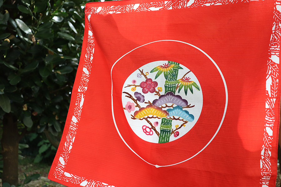 松竹梅模様は屋冨祖幸子さん主宰「やふそ紅型工房」による古典柄アレンジ。