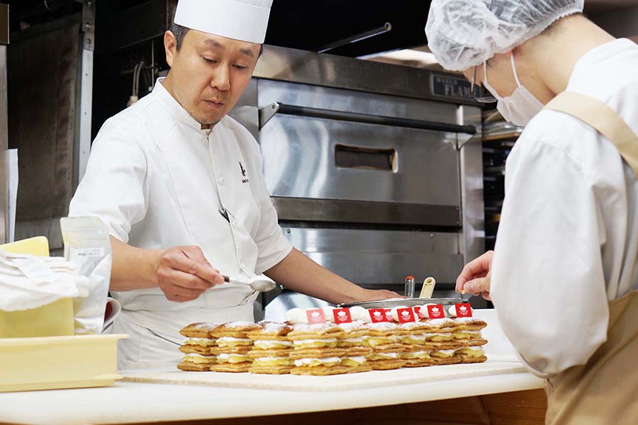 「できうる限り北海道産の素材を使ったスイーツをお届けしたい」とオーナーシェフの安孫子政之さん。とりわけ、北海道産の小麦にかける想いは人一倍。というのも、安孫子シェフのご実家は北海道・江別の製粉会社。「ハルユタカ」など北海道産小麦を全国に広めたパイオニア的存在です。「北海道産小麦のしっとりふんわりした食感、粉そのものの深い味わいも楽しんでいただけると嬉しいです」。
