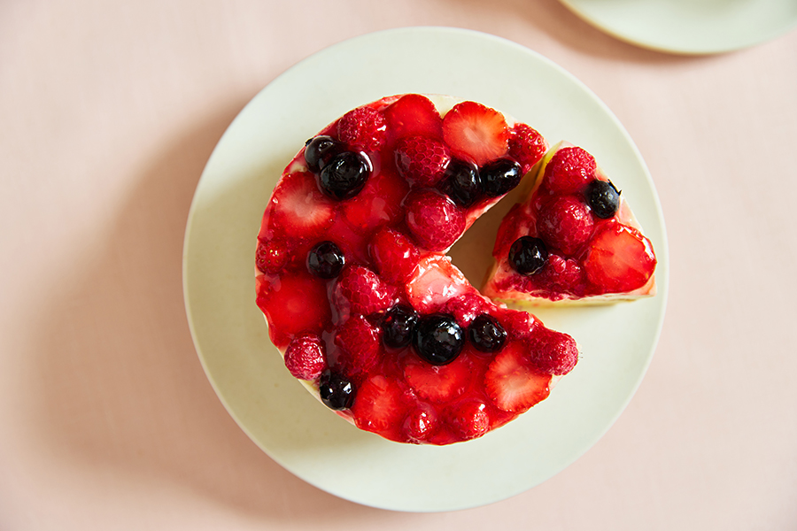 箱から取り出した瞬間、その鮮やかな彩りに歓声が上がりそう。お誕生日や記念日などの特別な日にぴったりです。2層のチーズケーキの爽やかな味わいと余韻は、食後のデザートとしてもおすすめです。