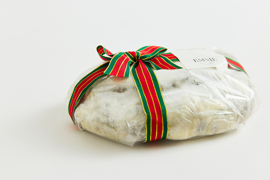 クリスマスに欠かせないシュトーレンはドイツ生まれのお菓子。今年は、大人気パティスリーの逸品とともにクリスマスシーズンを過ごしてみてはいかがでしょうか。青山の人気店「EMMÉ」のオーナーパティシエール・延命寺美也さんが、石川県「きたむら農園」のサマーブラック種の干しぶどうに魅了されたことから誕生したスイーツ。ギュッと凝縮されたぶどうの旨味がじんわりと口の中で広がります。