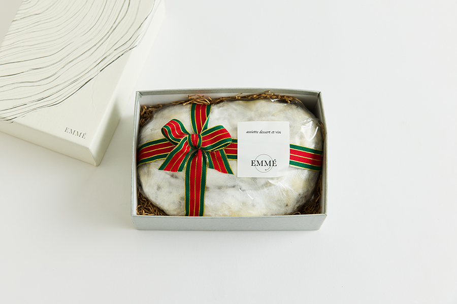 日頃から、「生産者さんの想いを受け継いで、美味しいを届ける」「生産者さんとEMMÉがお客様をつなぐ」という気持ちを大切にしているEMMÉ。農園など生産地を訪れた際に自ら見て、触れ、味わった食材の魅力を、お菓子作りに生かしています。農園で大切に育てられたぶどうをドライにしたこの干しぶどうを口にした瞬間から、「これでシュトーレンを焼きたい!」と強く思ったという延命寺さん。その想いを込めて焼き上げられたシュトーレンが、このクリスマス、本モールに登場しました。