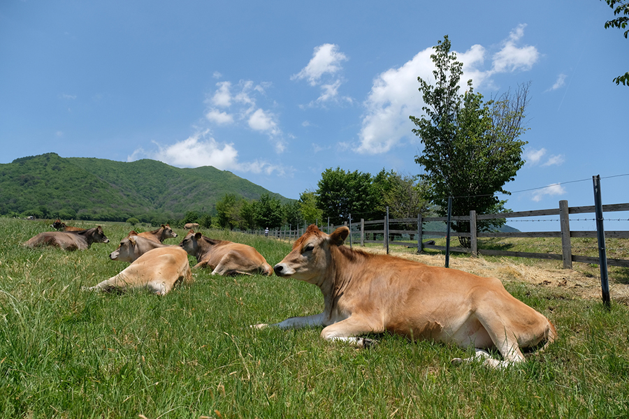 1956(昭和31)年に設立された蒜山酪農農業協同組合。岡山北部の真庭市にある標高500mの蒜山高原でジャージー牛などを飼育し、ヨーグルトやチーズ、スイーツなどを製造しています。大山の火山灰土にリン酸を加えて良質な土壌に整えた蒜山の土、その土に育った草を食べて飼育されているのが蒜山ジャージー牛。組合の創立以来、一貫してジャージー牛の飼育に注力しています。