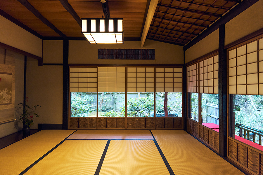 世界的彫刻家イサム・ノグチ氏が監修した「合掌の座敷」や、数寄屋建築の名匠・中村外二氏の手による「松の座敷」「梅の座敷」といった名室の数々を有する「鮎の宿 つたや」。本プランでは、茶の湯、夕餉、そして蛍火の鑑賞と、それぞれに座敷を移りながら趣の異なる空間を贅沢にお愉しみいただけます。茅葺きの風情と調和する清廉な意匠は、嵯峨野の自然と見事にとけ合い、「短夜初蛍」を味わうにふさわしい舞台といえます。