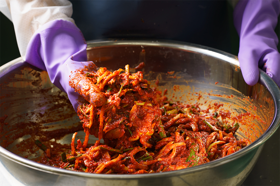 水揚げ後は鮮度を損なわないよう素早く下処理し、キムチの材料と和えた後、冷凍でお届け。韓国の食文化と北海道の恵みが出会って生まれた一品です。生産者と密に連携して鮮度のよい魚介だけを選び、水揚げ後は職人が素早く丁寧に下処理。旨味が保たれ、食べやすい味わいとなっています。