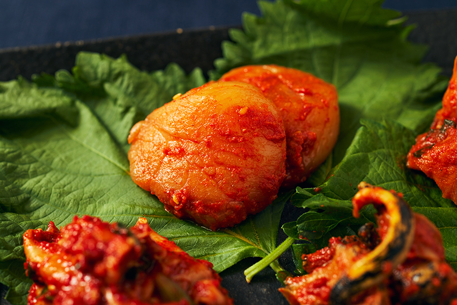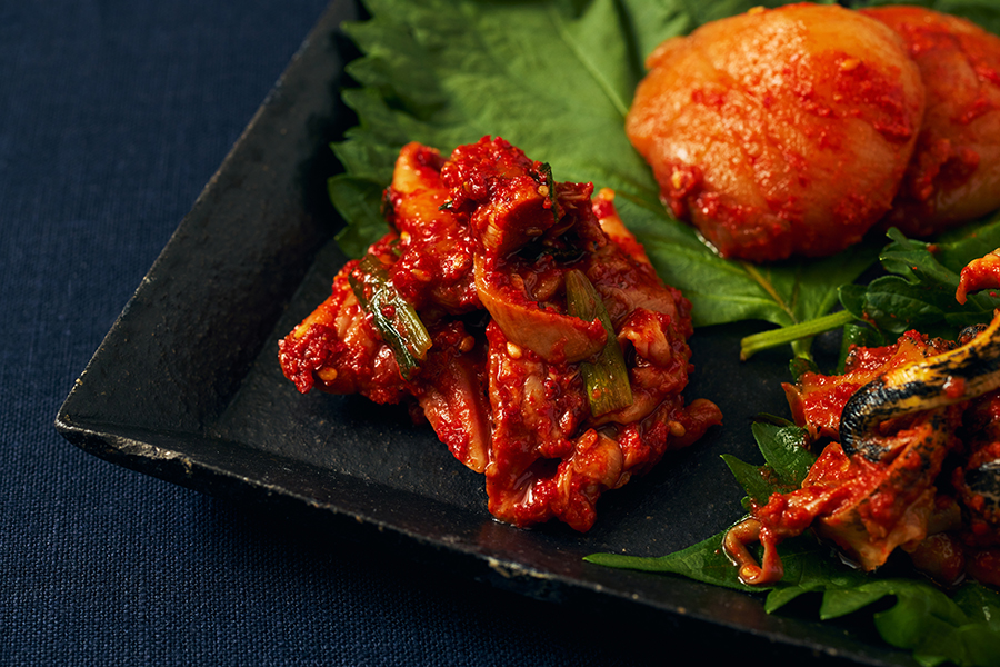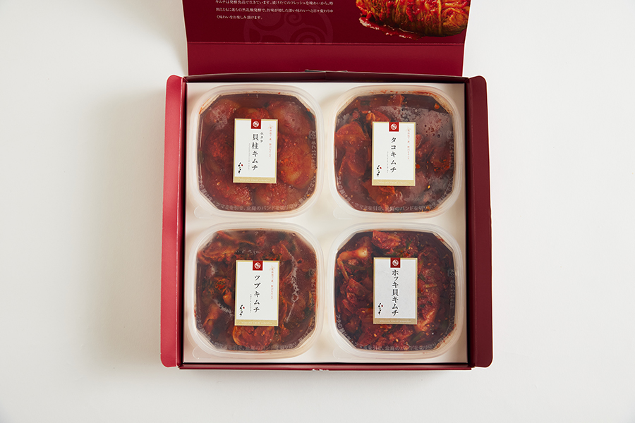 北海道各地で水揚げされた海の幸を、本場韓国の仕込みで漬け込んだ海鮮キムチができました。ホタテ貝柱、ホッキ貝、つぶ貝、タコの4種を詰め合わせたセットで、食べ比べも楽しめます。素材本来の味と香りを生かすため、辛さはあえて控えめに。後口にやさしい甘味と旨味が余韻として残ります。