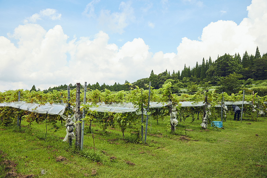 霧島和牛の糞は攪拌して堆肥にし、近隣の農家でも活用しています。そのひとつが、都城ワイナリーのぶどう畑です。この地は火山灰質の土壌で雨が多いことから、栄養が水分とともにすぐに流れてしまうため、年間で使う堆肥の量は80トン以上。化学肥料不使用の安全で安心なぶどうが育てられることから、持続可能な農業の在り方にも繋がっているのです。