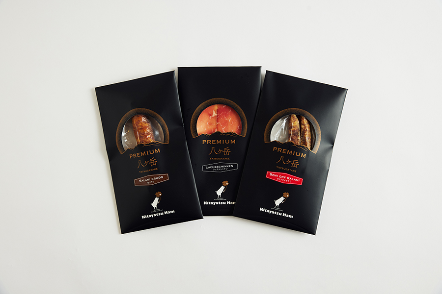 premium八ヶ岳シリーズは、きたやつハムのなかでも、養豚から加工まで一貫しており、生産に手間ひまをかけてこだわった限定ラインの商品です。肥育に用いる飼料や水も八ヶ岳の恵みを用いて、自社牧場で約9か月と通常より時間をかけて丁寧に育成した「八ヶ岳山麓豚」を使用。時間を重ねることで香りと旨味がゆっくりと満ち、八ヶ岳の自然の力が宿る独自の味わいが生まれます。