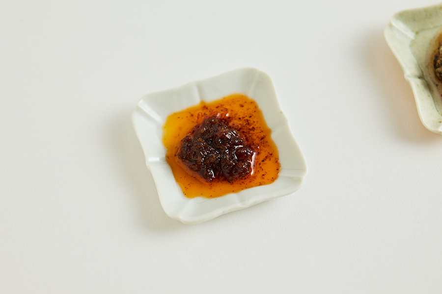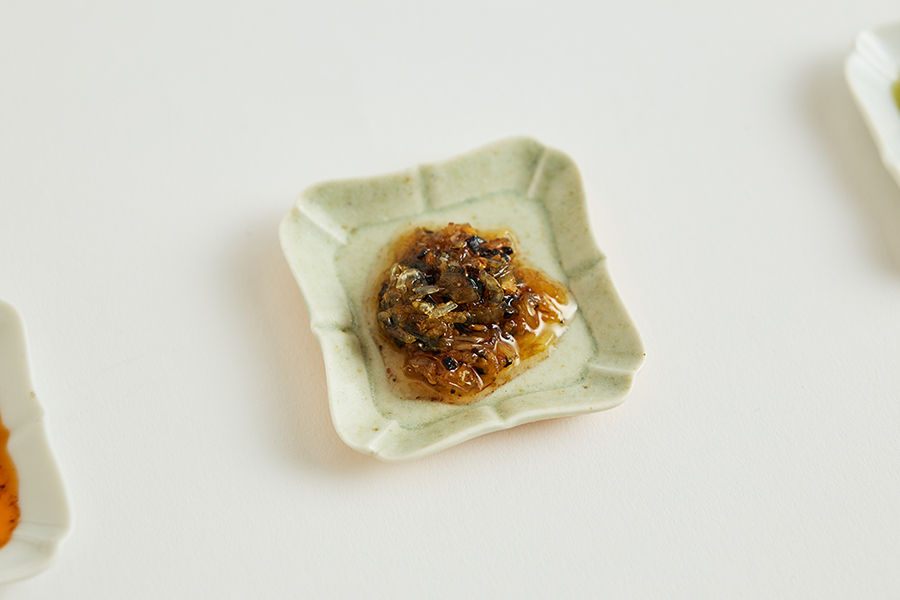 海老三昧は、にんにくや岩塩、塩昆布などを加えたプレーンなフレーバー。温かいご飯にのせて食べると、えびの旨味と風味がたっぷりと香り立ちます。炒飯に加えたり、マヨネーズと合わせて野菜のディップソースなどにするのもおすすめ。「小えびの旨味を生かしたい!」と試行錯誤を重ねて、誕生までに1年以上かかったという調味料シリーズの「長男」です。