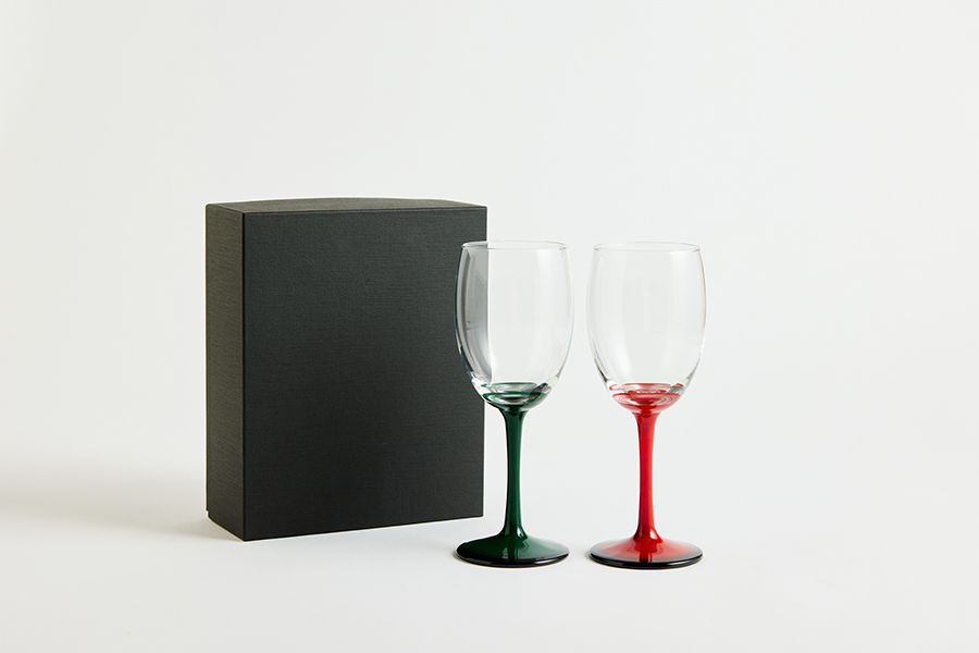 涼やかなイメージを持つガラスですが、漆という素材をプラスすることで温かみも生まれます。朱、緑を1脚ずつ組み合わせたセットは、まさに大人のクリスマスの食卓にうってつけ。白ワインを注げば、漆の朱や緑がさりげなくきらめき、それだけでぐっと聖夜の気分が高まります。プレゼントとしても喜ばれる逸品です。