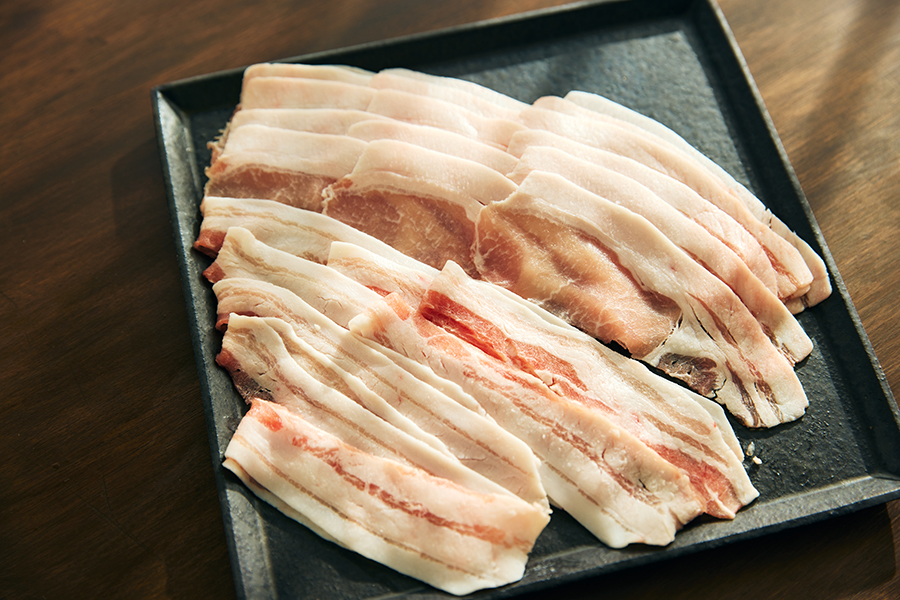 放牧に近いノンストレスな環境、パイン粕や自社で栽培した米など地元ならではの飼料に配慮して飼育された又吉アグー。美しい赤身と透き通るような脂が実に印象的です。栄養バランスにも優れており、アミノ酸やグルタミン酸などの旨味成分を一般的な豚肉より多く含有。脂肪が溶ける温度も31.1度とかなり低いので、口溶けよくあっさりと食べられるのも特徴です。