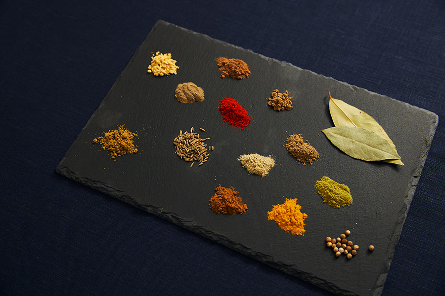 「スープカレーのようにさらりと食べられるカレーを目指しました」と開発に関わった「南横手商店」の横手拓哉さん。ビーフやチキンのブイヨンをベースとした欧風カレーとは一線を画す、スパイス豊かな味わいです。「富有柿独特の甘さを引き立てるのは、スパイスだと思ったんです。スパイスを基本から学び、さまざまな組み合わせを試した結果、柿ともバランスが良いカルダモンとコリアンダー、クミンを軸にした10種類ほどのオリジナルブレンドに落ち着きました」(横手さん)。