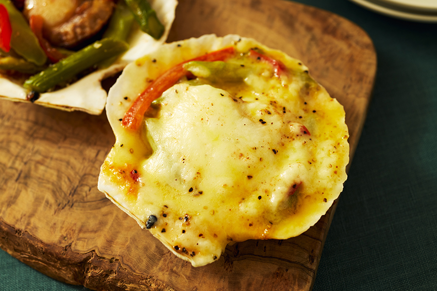 ベシャメル&チーズは、北海道産の新鮮な牛乳とバターで作ったベシャメルソースに、2種のチーズを加えています。帆立の美味しさを引き立てるまろやかなコクをお楽しみいただけます。ブラックペッパーが良いアクセントになっていて、ぜひワインとともにお召し上がりください。