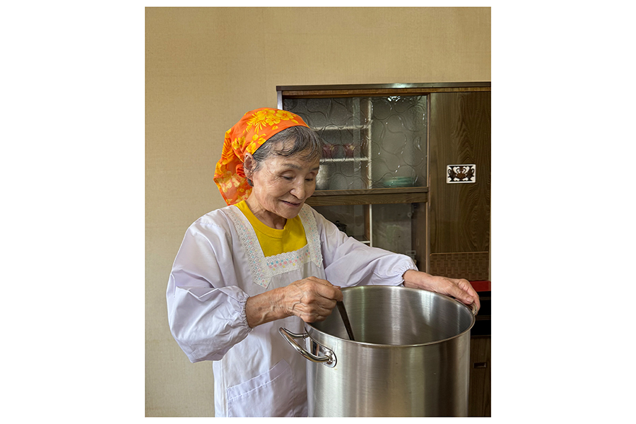 大阪だしを作っているときに「美味しくなぁれ」と言いながら、大きな寸胴鍋をかき回しているスミばあちゃん。削りたてのかつお節、肉厚の昆布から、ゆっくりと丁寧にだしを取っていきます。昔からお料理好きでサービス精神旺盛。「だし」もスミばあちゃんが親戚やご近所の方々にふるまったり、おすそ分けしていたことから口コミで評判に。折しも時はコロナ禍、外食もままならず、「おうちごはん」が主流となっていた時期だけに、万能な大阪だしは、あっという間に人気を呼びました。