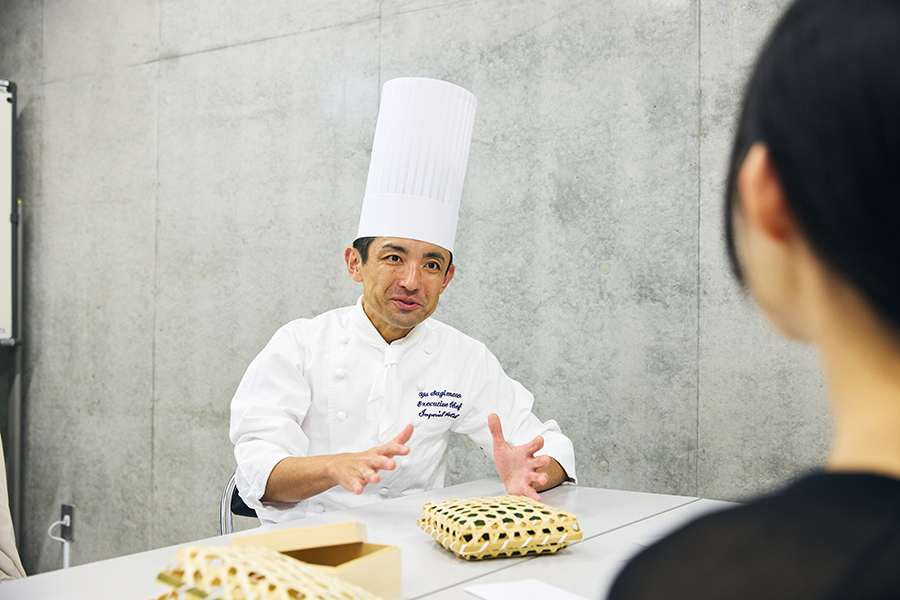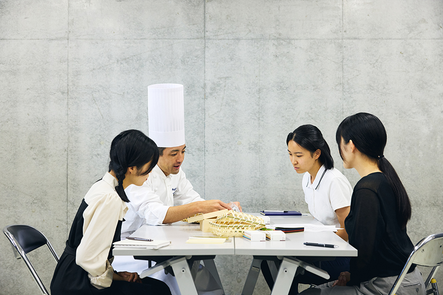そもそものきっかけは、「地元・京都のお茶の魅力を全国や海外に広めたい」という「MUUCHA」のチームの皆さんの想いに、杉本が共鳴したこと。「近年、世界的に抹茶が人気を集めていますが、本来の奥深い魅力はまだ十分に伝えきれていないと常々考えていたんです」(杉本)。そこで両者がタッグを組んで、商品開発や試作を帝国ホテルが、パッケージデザインと販売を学生たちが行うという、充実したコラボレーションが実現しました。