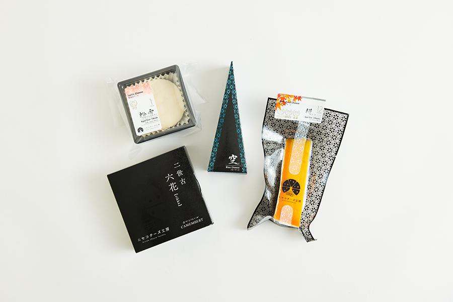 さわやかな苦味とナッツのようなテイストが持ち味の「空」は穏やかな風味の青カビチーズ。ミモレットを12か月以上熟成させた「椛」の味わいは、どこかからすみを思わせるとも。日本酒とも相性良し。さわやかでしっとりとした酵母タイプのチーズ「粉雪」は熟成が進むとよりクリーミーになり、パンやクラッカーに塗って楽しむのもおすすめ。軽めの赤ワインと合わせたい「六花」は、コクのある味わいのカマンベールチーズ。熱処理をしていないので冷蔵庫内でも熟成が進み、その変化も楽しめます。