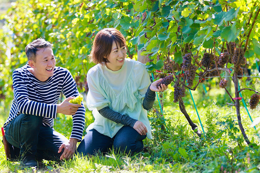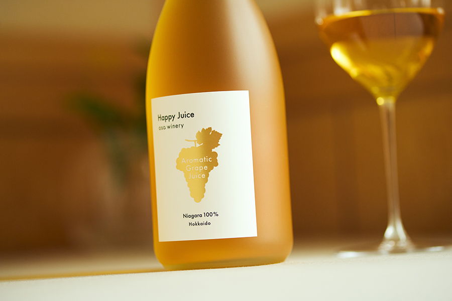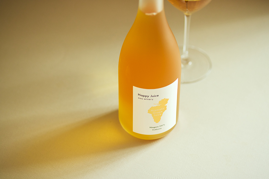 「レストランでソムリエさんが、ワインと同じくらいに自信をもっておすすめでき、食事中に楽しんでいただけるような白ぶどうジュースをつくりたかったんです」(長さん)。注ぐのはワイングラスがおすすめ。ワインのように、氷やストローなどは使わずに、冷やしてストレートでお召し上がりください。“Happy Juice”を飲んだら「泣いていたお子さんもぴたっと泣き止んだ」というエピソードもある、幸せの味。ぜひお試しください。