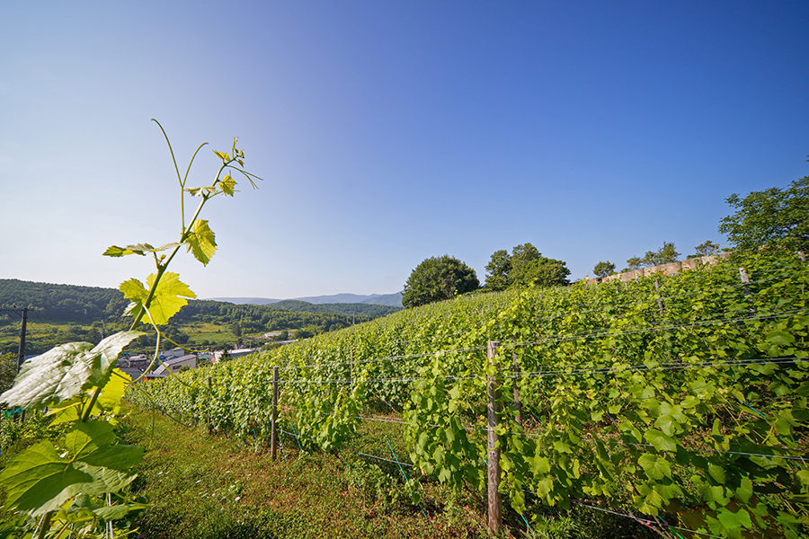 観光客でにぎわう小樽の街の一角にあるOSA WINERY。「ワインの楽しさを広めたい、日本の食に合うワインをつくりたい」という長さんご夫妻の想いが詰まったワイナリーです。ワイン商社の営業やソムリエとしてワインに携わっていたお二人が、ワイナリーを開設したのは2015年のこと。全国100カ所以上を訪ね歩いた末、「街の規模もほどよく、人の行き来も多い。食材にも恵まれていますし、ぶどうの一大産地・余市もすぐ近く」の小樽に拠点を構えました。約1ヘクタールの畑を開墾し、仲間とともに1本1本ぶどうを植えるところからのスタートでした。