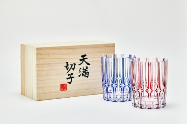 帝国ホテル 大阪開業25周年を記念したオリジナルデザインの天満切子です。「天満切子」は「薩摩切子」の技術を伝承するとともに、今までにない輝きを引き出す技法を加えており、その輝きは宝石のように美しく、万華鏡のような広がりを見せます。帝国ホテル 大阪ではオリジナルカットを施した「天満切子」を販売しています。飾り棚に置いて眺める「鑑賞の美」だけではなく、愛用いただくことで発揮する「用の美」もお楽しみください。こちらの商品は帝国ホテル 大阪のオールドインペリアルバーでも使用しております。