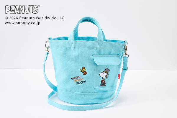 ドアマン・スヌーピー ショルダー付トートバッグ 水色(小)
