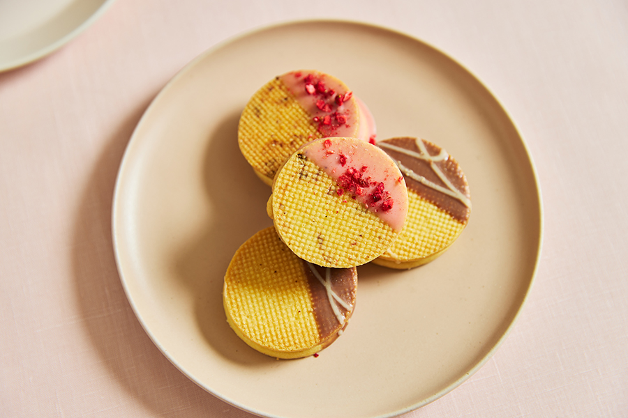 「フレーズサブレ」は、ホワイトチョコレートをベースにした優しいピンクのストロベリークリームと、ほのかに甘いサブレが好相性。香料や着色料を使用せず、いちごそのものの風味を閉じ込めた無添加のフリーズドライのいちごがおしゃれにあしらわれ、華やかな香りが春気分を誘います。一方の「塩キャラメルサブレ」は、サブレ生地に、ほんのり塩味の塩キャラメルクリームをサンド。丁寧に炊き上げたキャラメルに能登の海水から作られた塩を加え、甘さと塩味、ほのかな苦味のバランスを追求しました。サクッとした食べ応えも心地よく、後を引く味わいです。