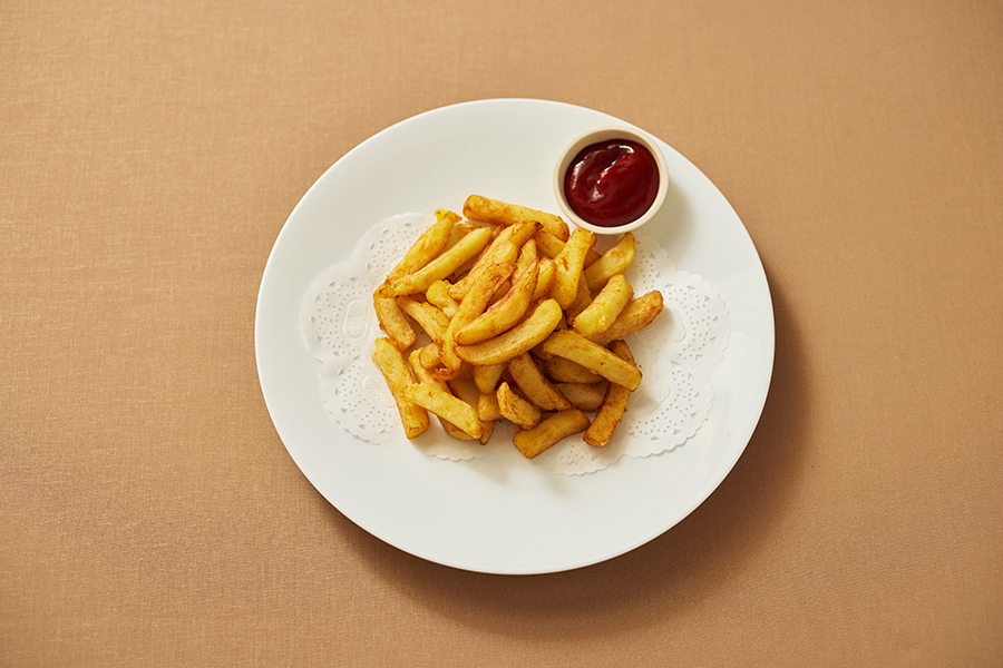 つまみやすく食べ応えのある太めカット。表面はカリッ、中はフワフワとした食感でなめらかな舌触りが特徴です。じゃがいも本来の甘味と風味がダイレクトに感じられ、その美味しさに食べ始めたら止まらないという声も多数。ご家族やご友人とのパーティーでは、揚げたてを手軽につまめるよう豪快に盛りつけ、ビールやワイン、ジュースなど、お好みのドリンクとともにお楽しみください。揚げたてに薄塩だけでも十分ですが、ケチャップを付けても美味。