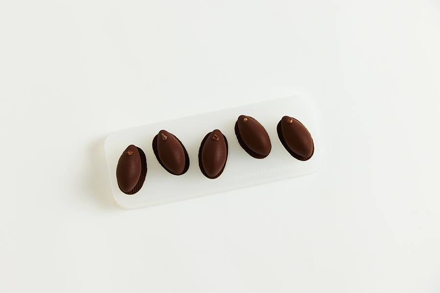 サブレごと手に取って、一口いただくと、パリッとしたチョコレートコーティングの食感ととろりとしたチョコレートクリームのハーモニーに思わずうっとり。パリクレームという商品名は、このパリッとした口当たりと、吉武広樹シェフがRestaurant Solaをスタートさせたフランスのパリに由来している、というのも楽しいエピソードです。