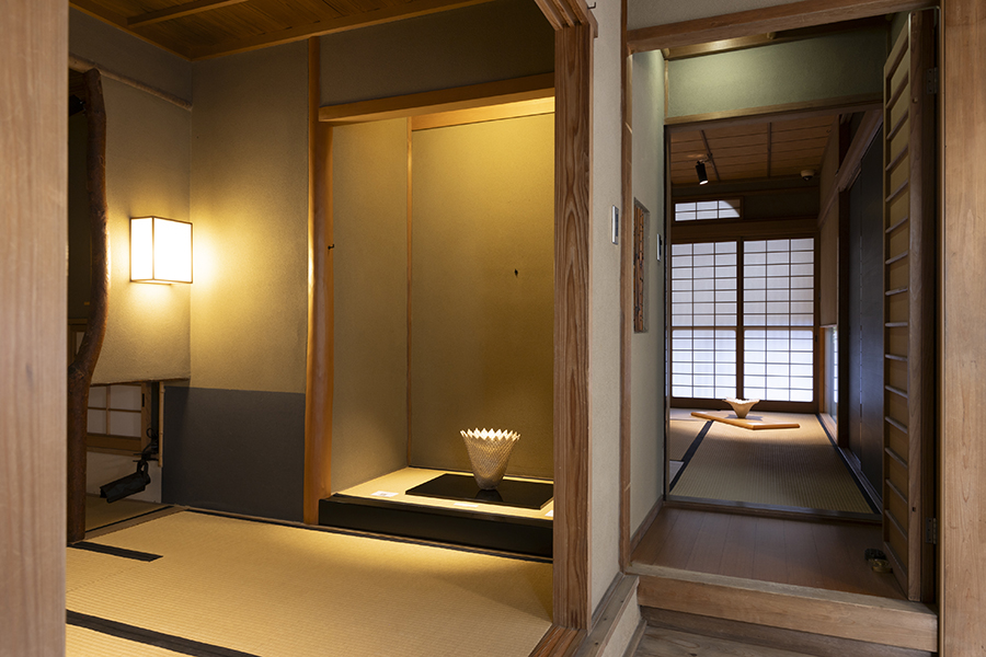 京町屋の店舗には、奥にギャラリーも。日本だけでなく、アジアやフランスなど世界各地で活躍するアーティストのモダンな金属系アートが展示されています。金属の新たな可能性を感じさせる、心躍るスポットです。