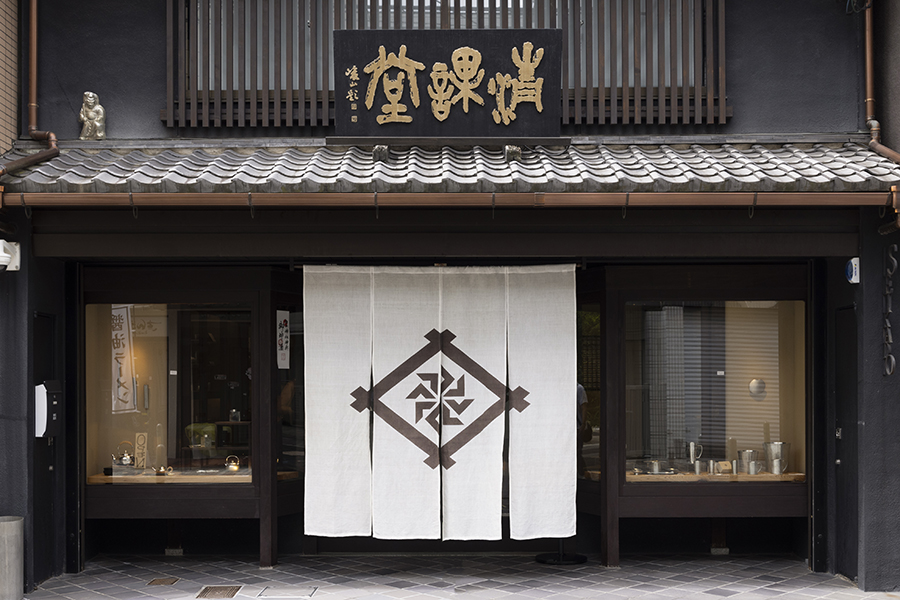1838(天保9)年、京都・寺町二条の地に初代・山中源兵衛が「錫源」として創業した「清課堂」。錫をはじめ、各種金属素材を使った製品は、宮中や神社仏閣などに多く納められています。一時期廃れかけた日本の「錫」文化を守り、伝え続ける貴重な一軒。店内にはタンブラーや皿、ちろりや徳利といった器類から根付まで幅広い錫・金属製品が並んでいます。