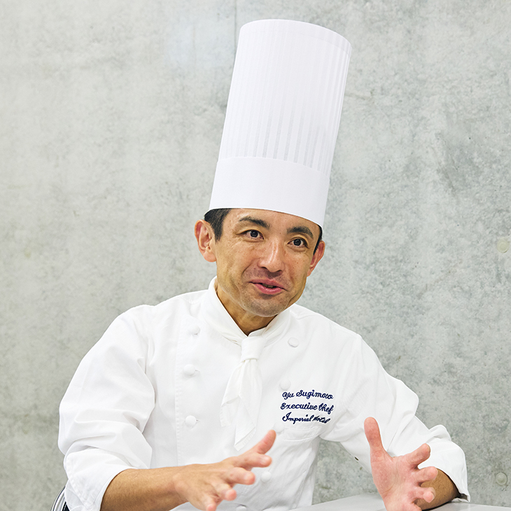 「白神生ハム・原木」には「菊鹿シャルドネ樽熟成2022 ANoTHER IMPERIAL HOTELオリジナルラベル」のマリアージュがおすすめ。こちらの原木生ハムは旨みのある油を含んでいるため、さっぱりとした白ワインと相性抜群。菊鹿シャルドネ樽熟成2022は酸味のキレがよくすっきりしているので、より原木生ハムの食感や塩味・甘味を引き立ててくれます。