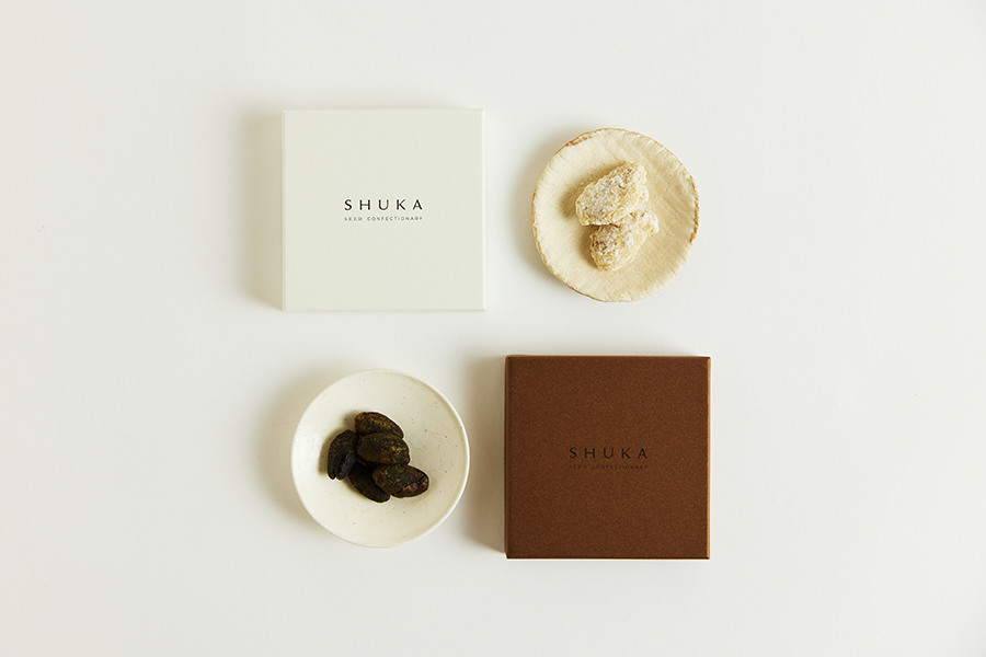 種と糖だけでお菓子を作るSHUKAは、京都の老舗甘納豆店「斗六屋」から生まれたスイーツブランド。4代目主人が「甘納豆の持つ価値を伝え、世界にも通じる味わいを」との思いを込め、2022年に立ち上げました。豆=種という発想から、種が持つ個性やパワーをそのまま映し出すスイーツ作りがモットー。初代が目指した“都名物”の甘納豆を、新たな形で次世代に繋げます。