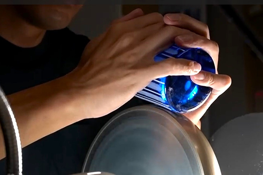 隆盛を誇った大阪のガラス産業を次世代へ繋ぐため、三代目・宇良孝次さんは職人を社員として採用し、技術を基礎から伝授して育成しています。伝統の継承にとどまらず、暮らしに寄り添う新作や協業も積極的に展開。天満の名を冠した切子の価値を、明日へ磨き上げていきます。