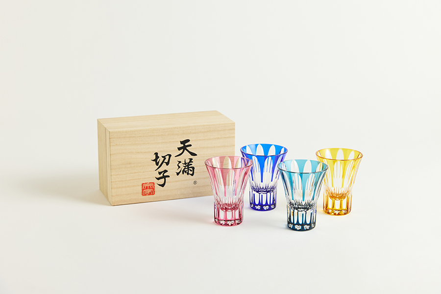 1933年創業の天満切子は、ガラスの町、大阪・天満で育まれた切子工房。老舗「宇良硝子加工所」を母体とし、2003年からU字彫りを核とした独自技法を用いて、酒器や器を生み出してきました。社名をそのままブランド名とした天満切子は、大阪市長賞を受賞するとともに、技能顕功章も授与されています。2019年G20大阪サミットでは来賓への贈答品に選ばれ、2025年大阪・関西万博の誘致活動でも記念品として贈られました。
