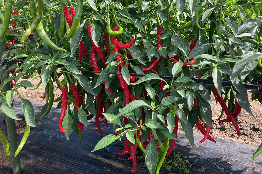 素材選びは「長野らしさ」も大切にしています。たとえば七味唐辛子の主軸となる唐辛子は長野県の伝統野菜のひとつである「大鹿唐辛子」をチョイス。長野県大鹿村でしか栽培されないこの唐辛子は、色合いも美しく、穏やかな辛味とほのかな甘さが持ち味です。八幡屋礒五郎のスタッフもお手伝いに通っている大鹿村の唐辛子畑で、手塩にかけて育てられた希少な唐辛子です。