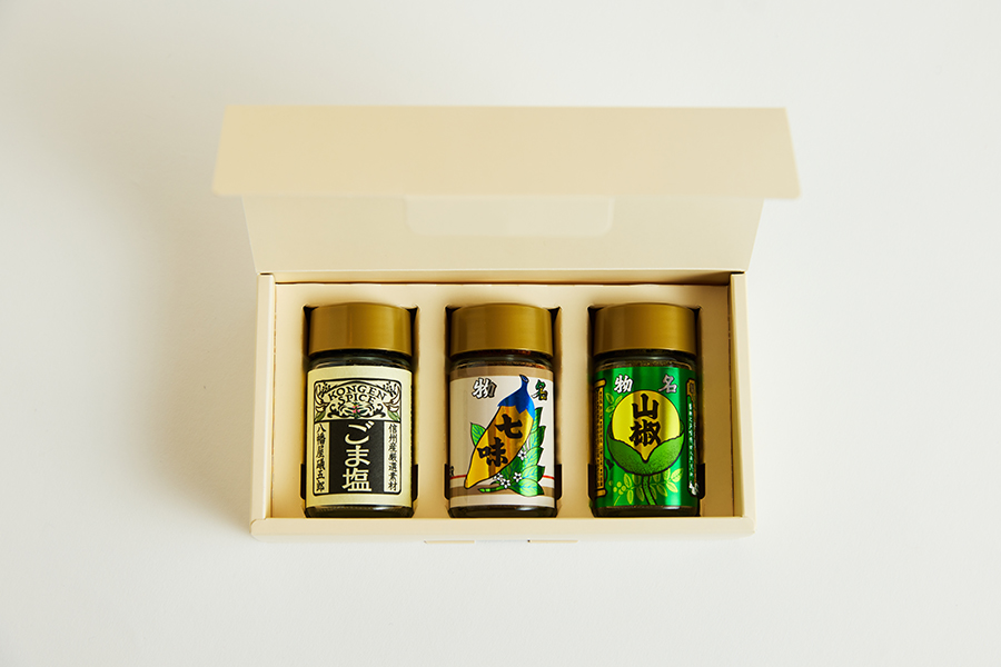 創業は1736(元文元)年。日本三大七味の一軒として知られる老舗です。浅草のやげん堀、京都の七味家と比べると、八幡屋礒五郎の七味唐辛子は辛味も香りも強めなのが特徴。というのも、海のない信州では味噌をはじめとした味の濃い保存食が多いため、それに合う唐辛子が好まれたからなのだとか。ベースとなる原材料のほとんどが地元で栽培されていたことも七味作りには大きなメリットでした。現在も、確かな原材料のセレクトや自社栽培・加工に力を入れている八幡屋礒五郎。和のスパイスにとどまらず、「SHICHIMI」の世界ブランド化も目指します。