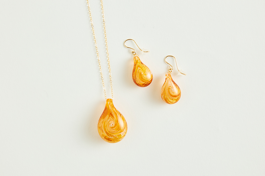 小樽の工房で、一点ずつ手仕事で作品を生み出している「幸愛硝子(ゆきえがらす)」より、クリアな色彩が印象的なドロップ形アクセサリーが届きました。透明度の高いクリスタルガラスに、国内外から選んだ色ガラスを重ね、繊細で美しい色調をデザイン。ピアスとペンダントのセット、またはピアス単品からお好みに合わせてお選びいただけます。ピアスはイヤリングへの変更も可能です。身に着けると、装いだけでなくその日の気分まで華やかに彩ってくれます。